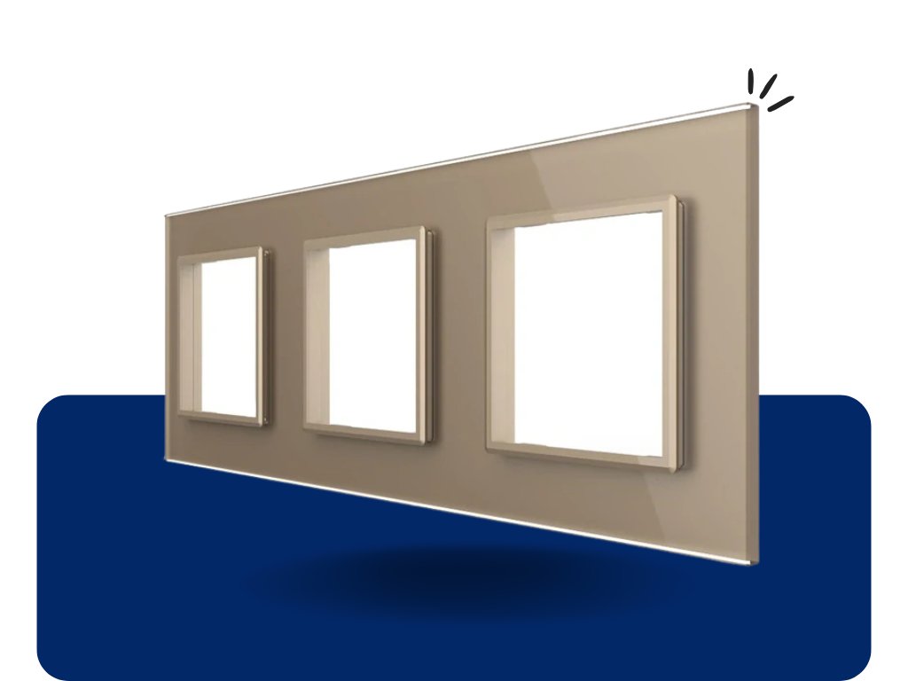 Exkluzívny sklenený rámik LIVOLO v elegantnom sklenenom prevedení. Rámiky je možné použiť s náhradnými dielmi Livolo. Stačí si vybrať správny rámik podľa potreby a následne si vybrať vnútorné komponenty podľa potreby (napríklad strojček na žalúzie, strojček na svetlo č.1,...)