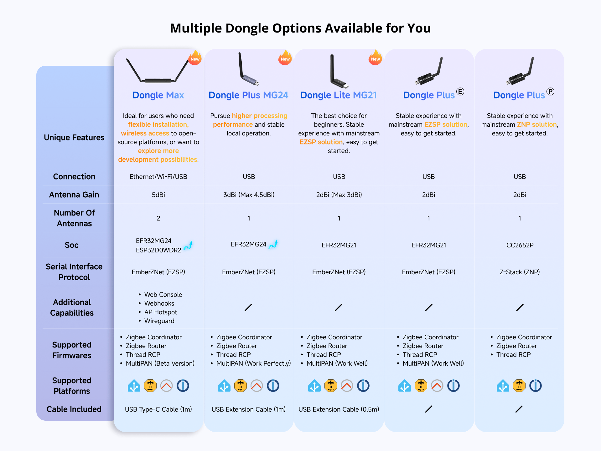Podporuje tiež aktualizáciu firmvéru pomocou nástroja Dongle Flasher na prepínanie medzi rôznymi open-source platformami.
